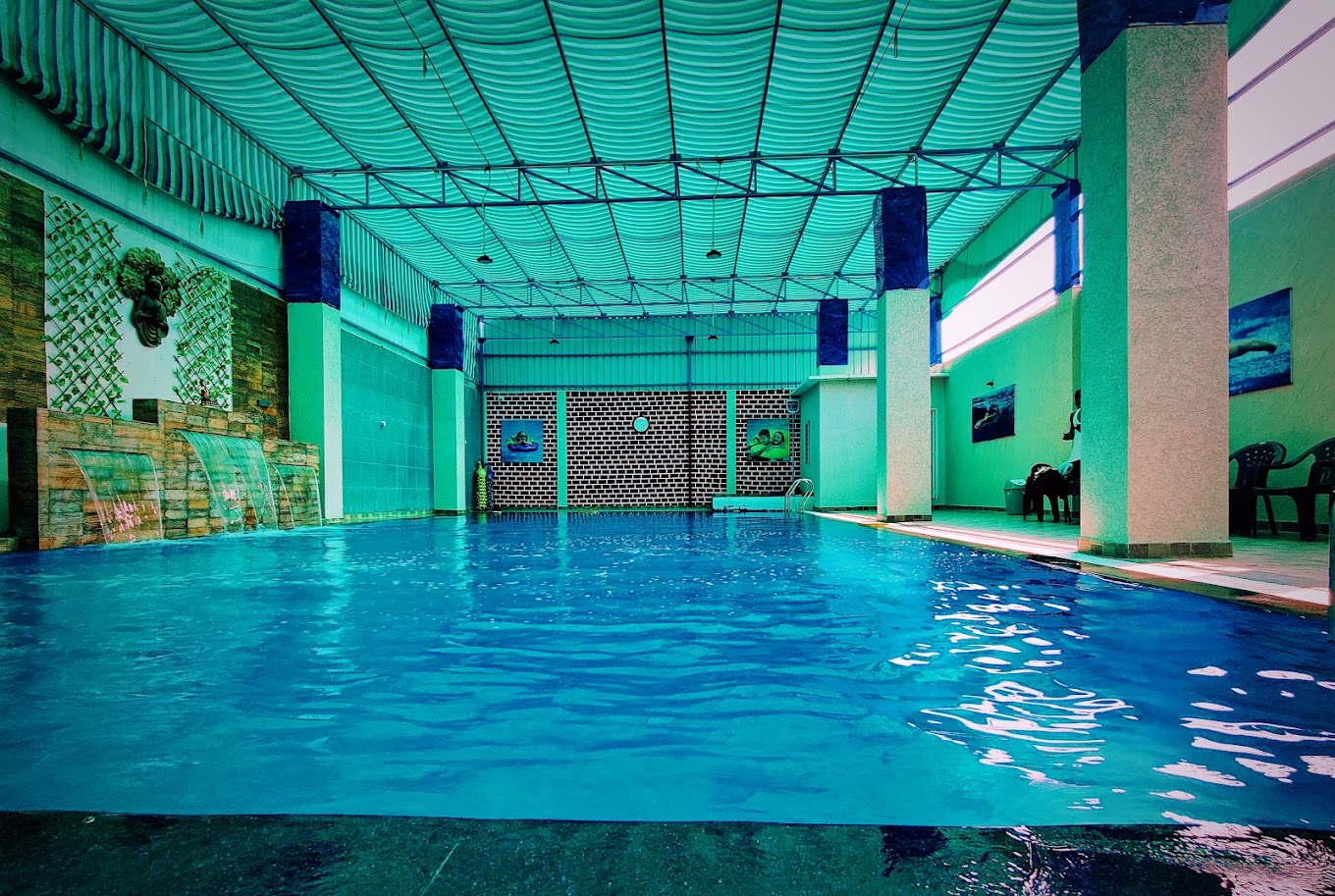 The fascinating, open air swimming pool is located near a tremendous ocean with its beautiful view. Swimming pool is construct with the cool blue tiles that enhance the color of water in the pool. Day is not so hot due to slight breeze that touching the people faces softly.